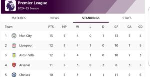 Tottenham also enjoyed success, defeating Brentford 3-1. Their strong performance keeps them in the mix as the competition heats up. After this weekend’s action, Manchester City sit atop the Premier League table with 14 points. Liverpool and Aston Villa follow closely behind, both tied with 13 points, while Arsenal hold fourth with 11 points. As the season progresses, the race for the title is shaping up to be an exhilarating contest, with each match offering a fresh twist in the table.