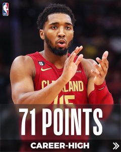 Donovan Mitchell set a franchise record of 71 points in a game as the Cleveland Cavaliers beat the Chicago Bulls in Monday’s NBA action. The points helped the Cavs rally from 21 points down to win 145-134 in Overtime.