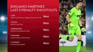 Goalkeeper Emi Martinez saved 2 penalties in the Copa América quarter final shootout between Argentina and Ecuador to guarantee safe passage for Argentina through to the semi-finals. This wasn’t the first he has done this for Argentina as many will remember his heroics in the World Cup final that granted Argentina access to holy grail of the footballing world. Although he only saved on of the 4 penalties he faced, he guessed the right direction for them all. That is to say, the 2 that entered had to be expertly taken to beat him. One could easily conclude the one that missed the target was as a result of trying to be an expertly taken one.
