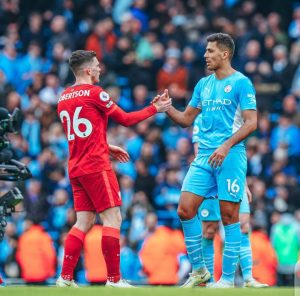 The tie which was highly contested was a high-octane affair that saw Liverpool come from behind twice at the Etihad. Kevin De Bruyne opened the scoring in the fifth minute with his strike deflecting off Joel Matip to find its way to the back of the net. Soon after a strike from in form Diogo Jota would bring Liverpool at par with the league leaders once again. Liverpool almost went ahead in the 23rd minute when City Goalkeeper Ederson slipped missing the ball which almost went into his own net before quickly ushering it away. Gabriel Jesus would then reinstate City’s lead in the 36th minute with the match heading to half time with a 2-1 score.