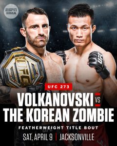 Alexander Volkanovski is set to defend his UFC Featherweight title against Chan Sung Jung at UFC 273. Chan, popularly known as the Korean Zombie got his chance after Max Holloway dropped out due to injury. The fight will headline UFC 273 which has a stacked card with two title fights.